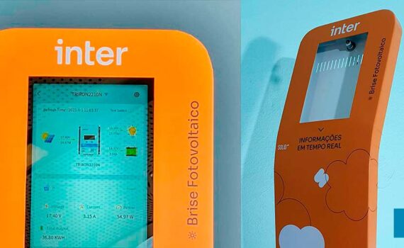Nosso modelo de totem para tablet posição vertical, Tower20, foi fabricado e personalizado com adesivo em alta, utilizando tablet Samsung A8 de 10.5 polegadas, para empresa de energia fotovoltaica. O totem foi colocado na sede de um banco promovendo energia sustentável.