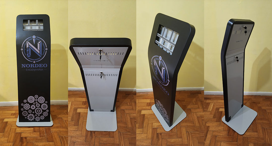 - tomada externa na traseira do totem para carregamento do tablet sem necessidade de retirá-lo da estrutura;
